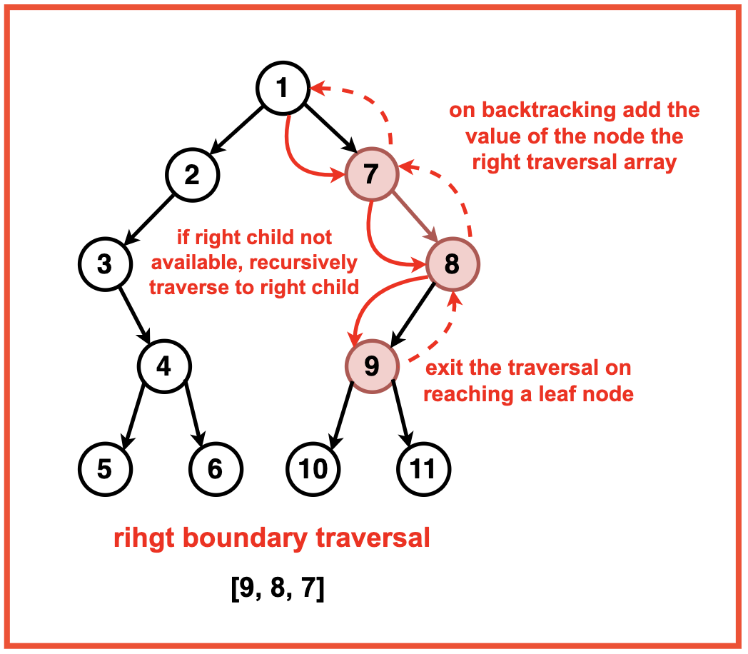 Boundary Traversal of a Binary Tree is the traversal of the tree that visits the left boundary, the leaves, and the right boundary of the tree.